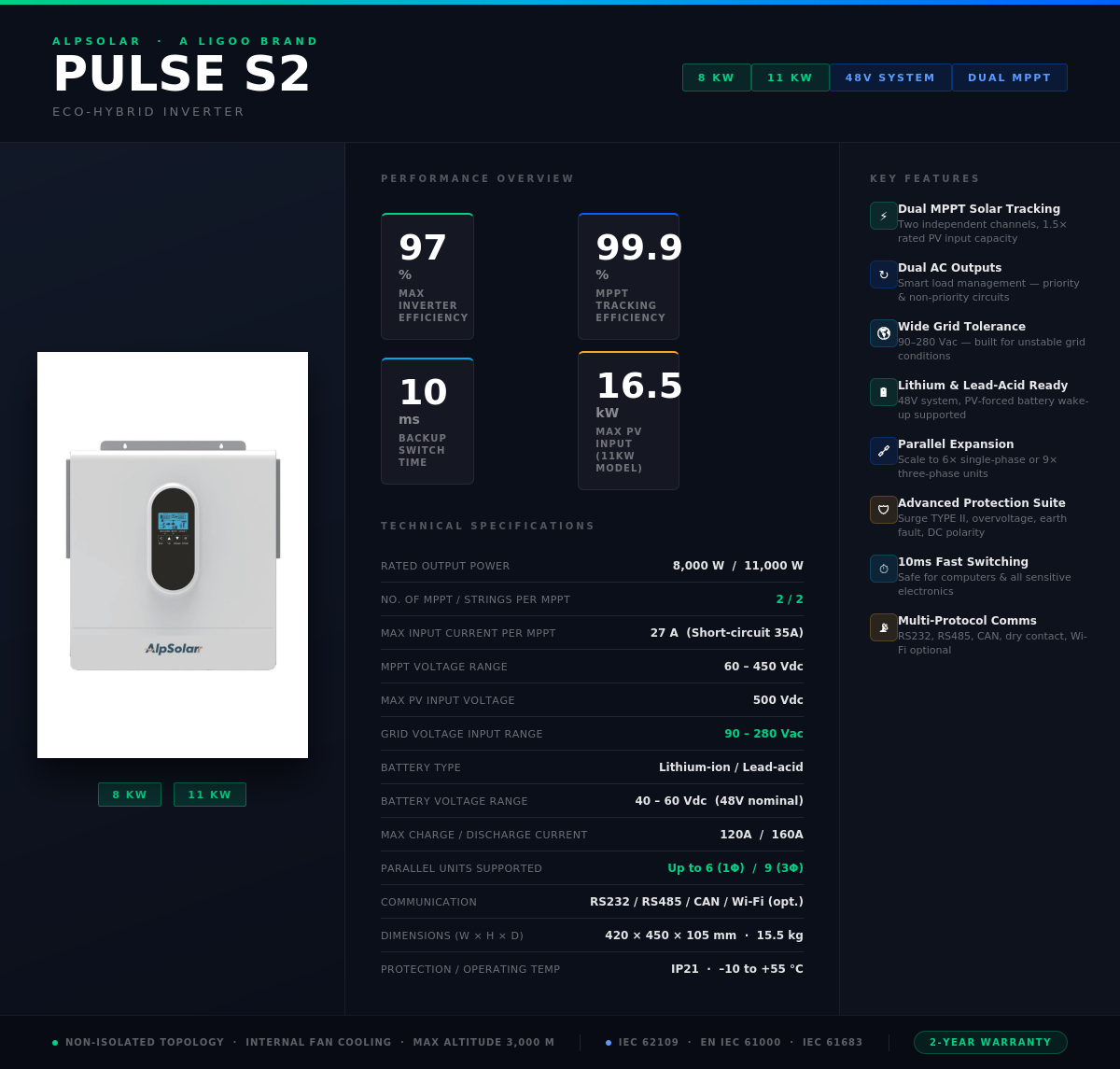 Technical Specifications – Alpsolar Pulse S2 11kW